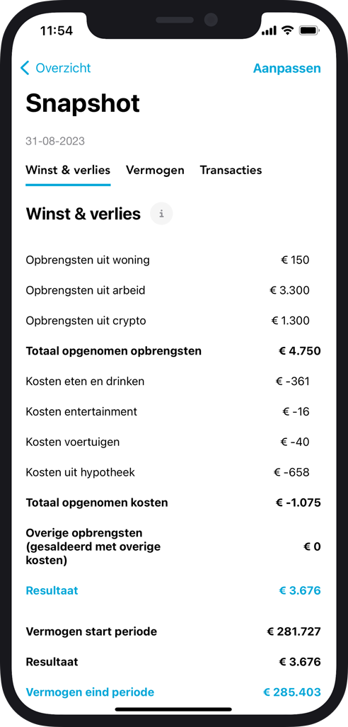 De personal finance app waarmee jij gemakkelijk diepgaand inzicht krijgt in je financiën en actief bezig bent met je vermogen. Download de app nu in de iOS App Store en Google Play Store.