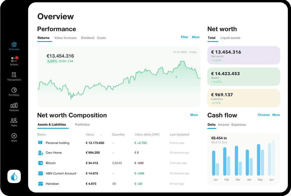 Provide wealth monitoring services with ease — switch effortlessly between clients, eliminate repetitive admin work, and implement cohesive, refined financial processes.